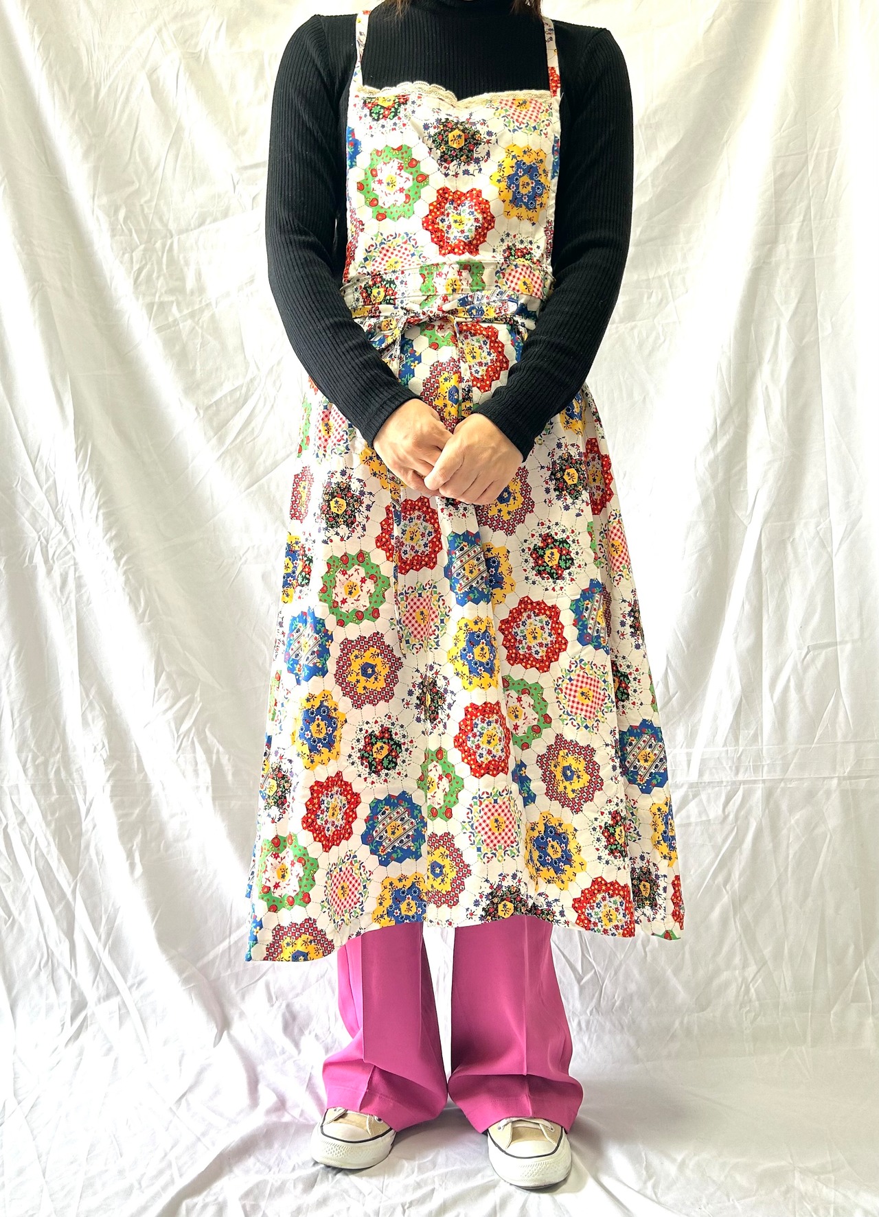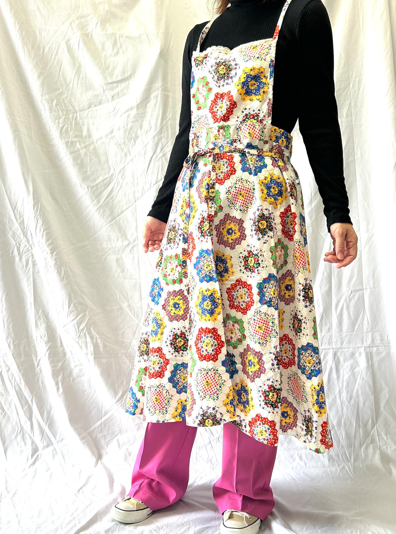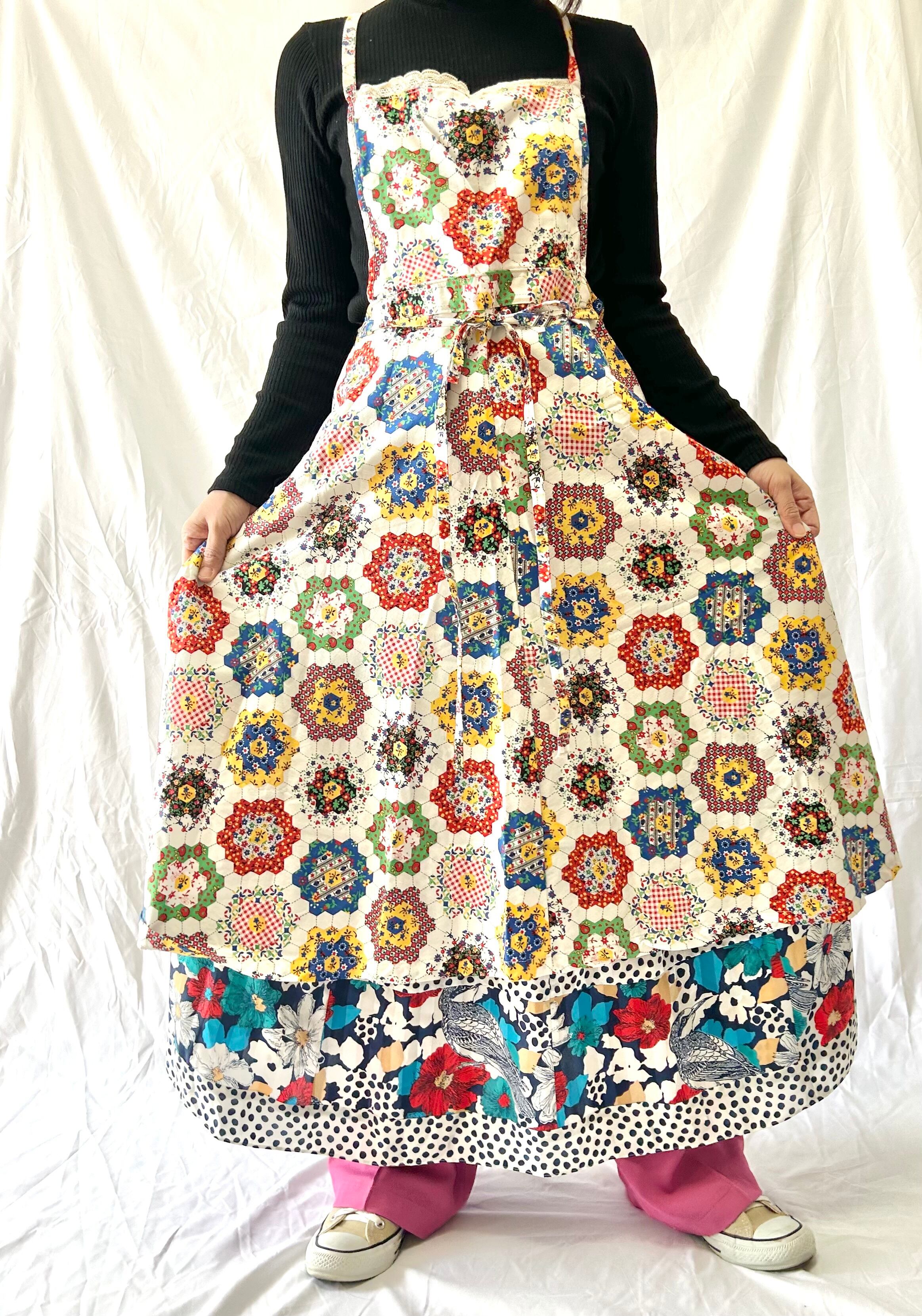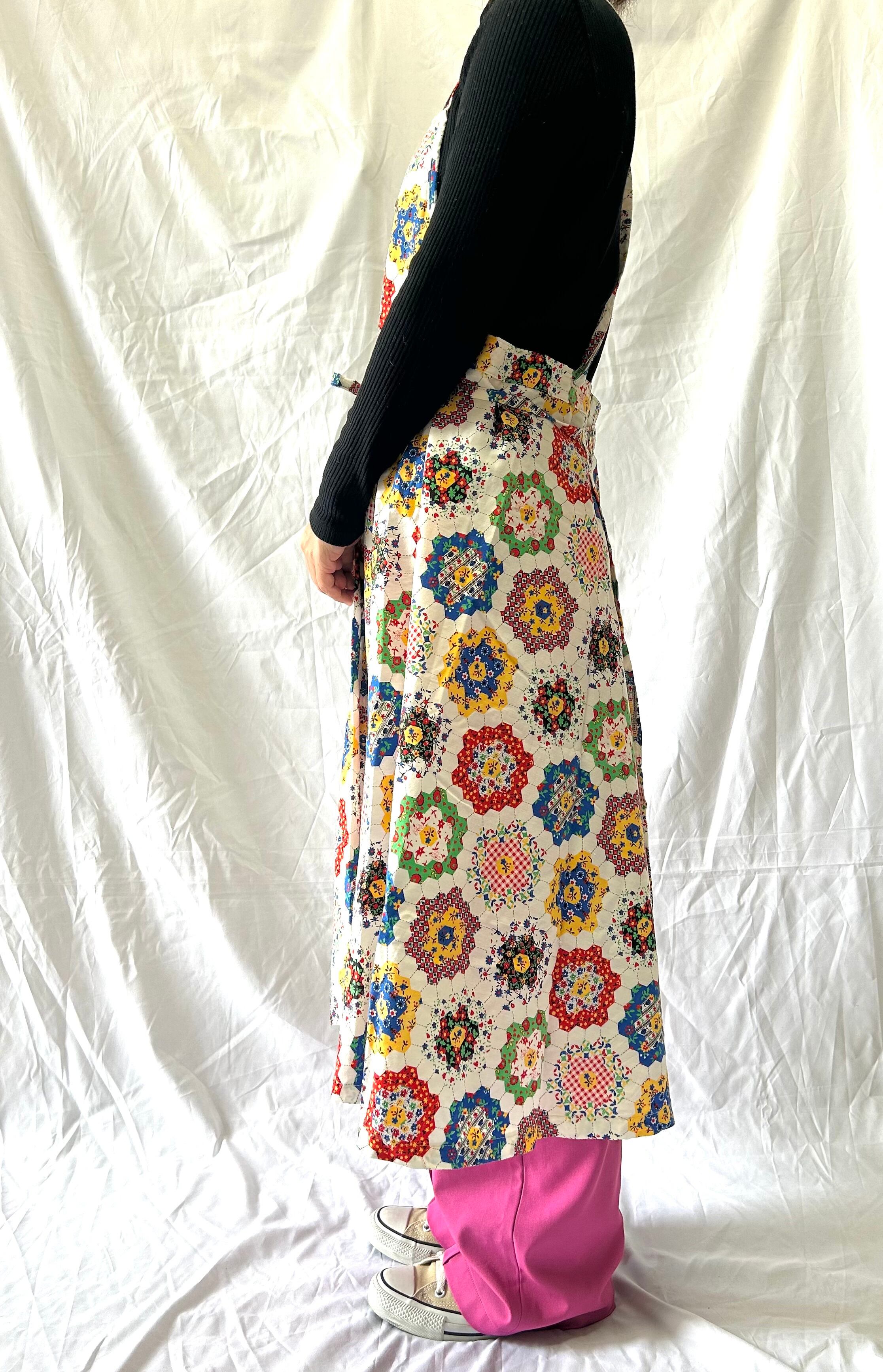 パッチワークエプロンワンピース