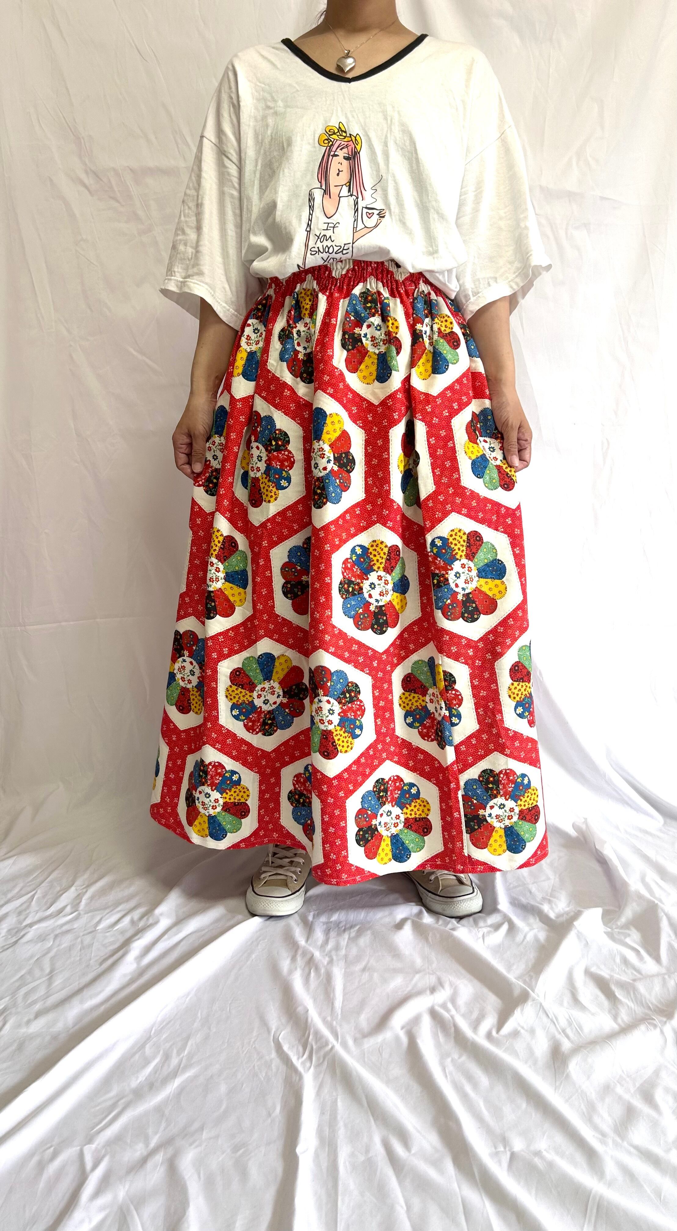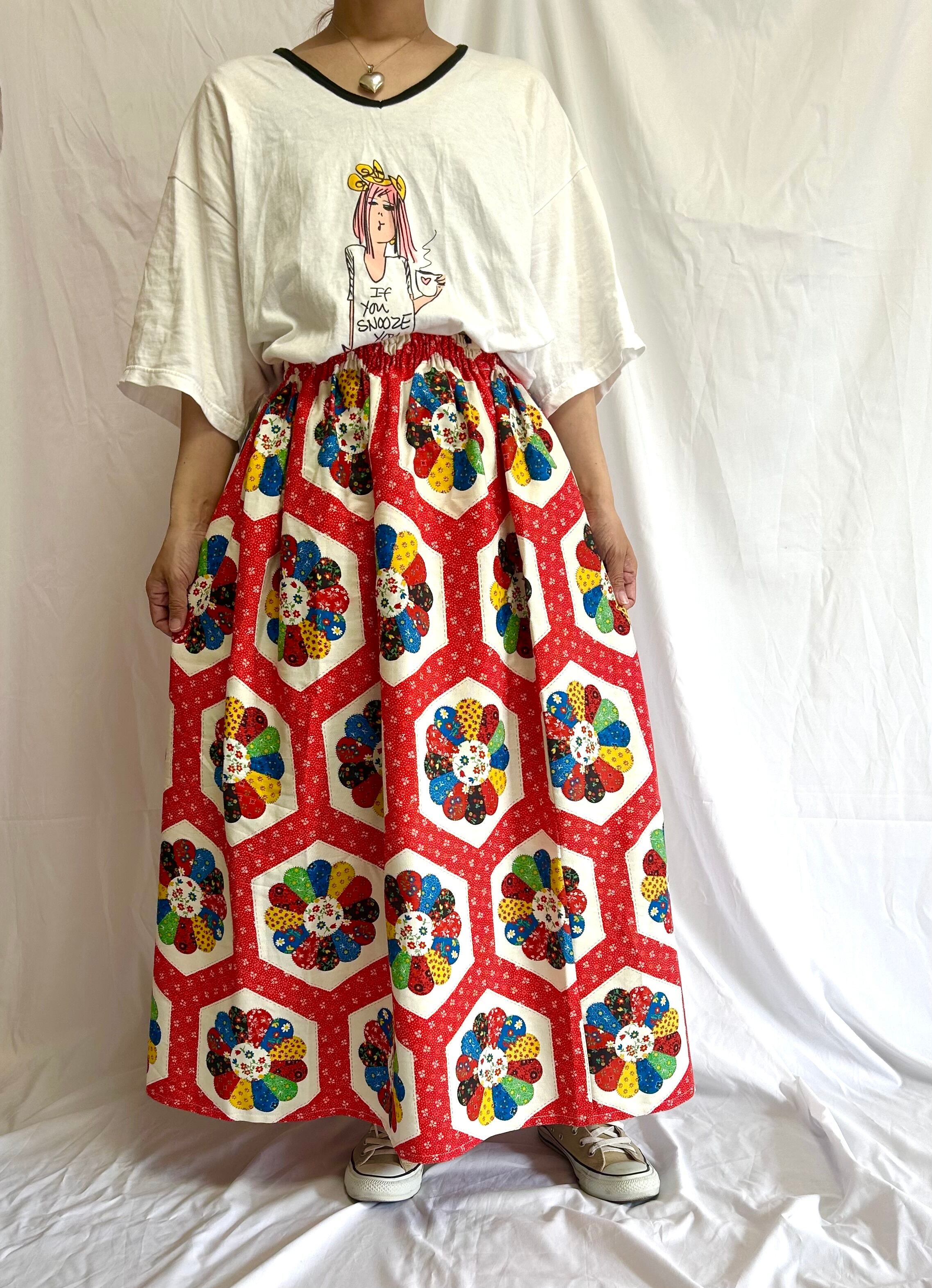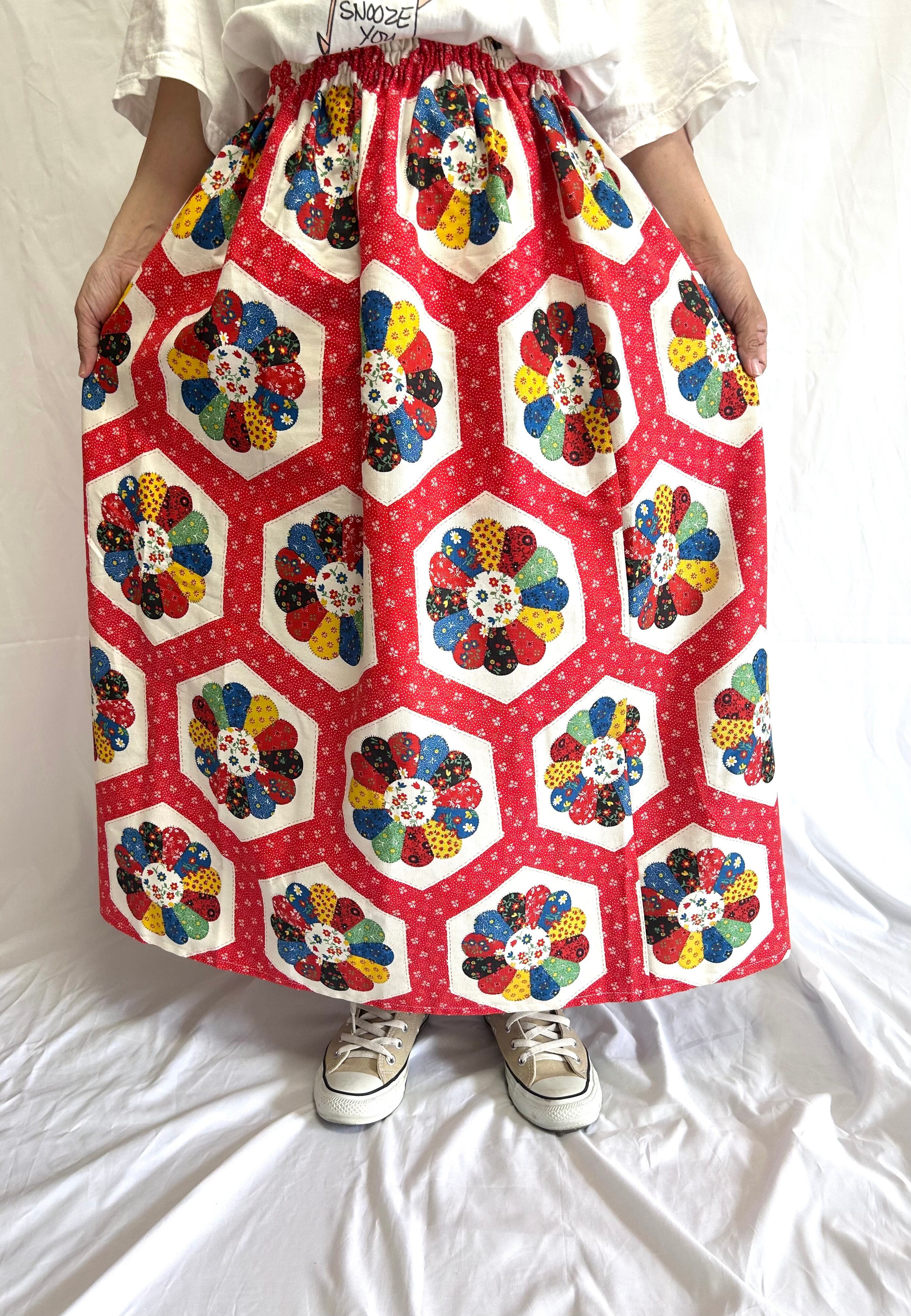 vintage fabric Dresden skirt 赤