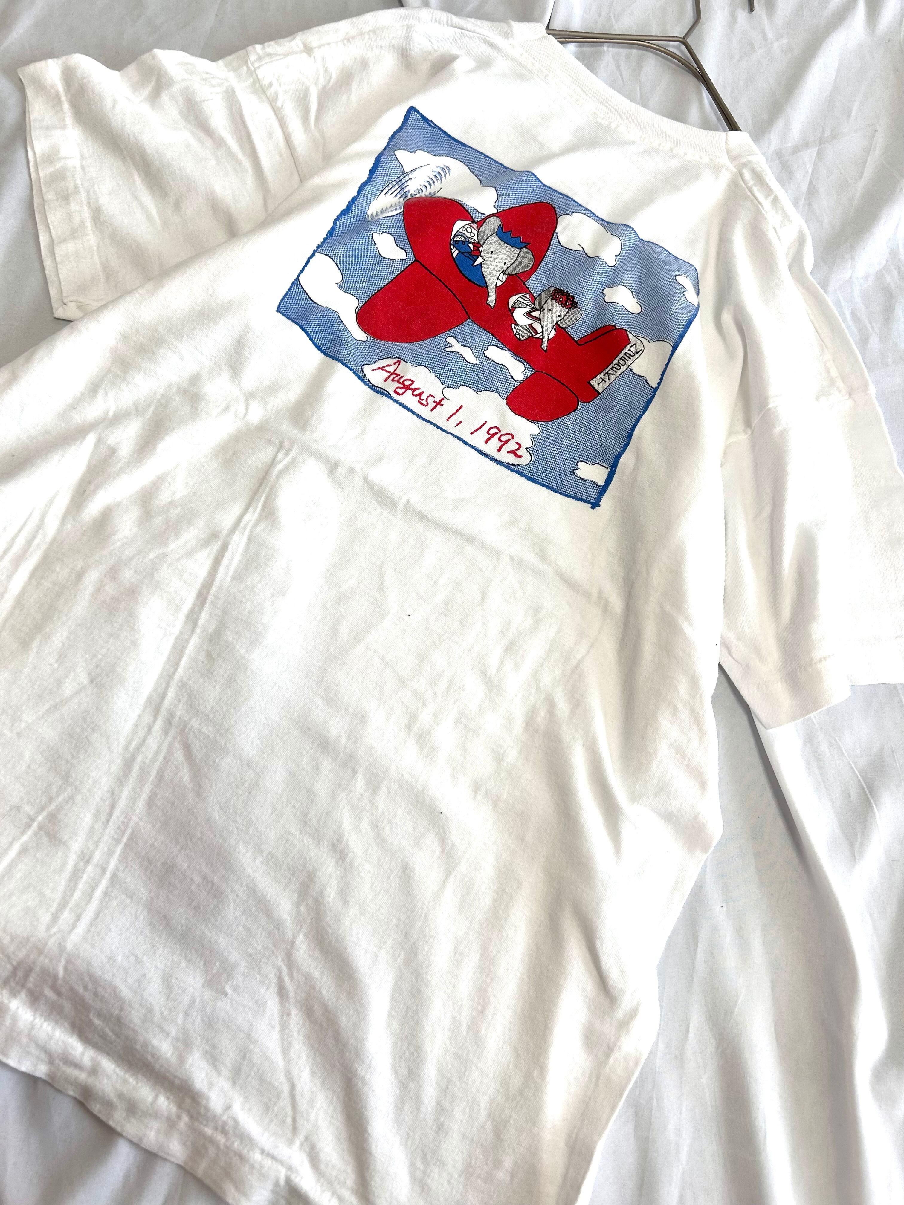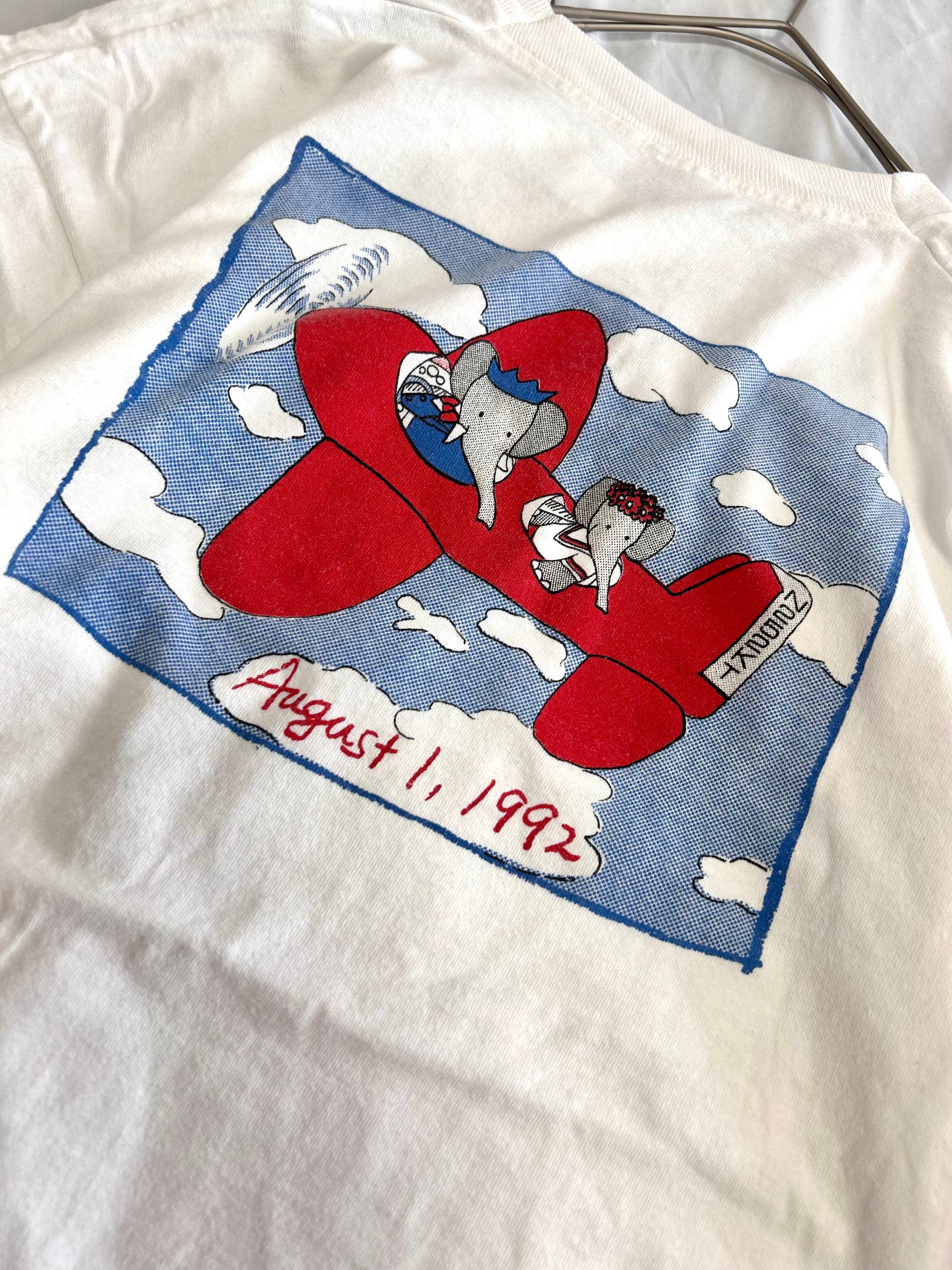 Tシャツ デート サイズXL 肩幅56cm 身幅58cm 着丈70cm 可愛いゾウさんのレトロなプリントです。 こちらはバッグプリントになります。 シングルステッチ 大きなダメージはございません。