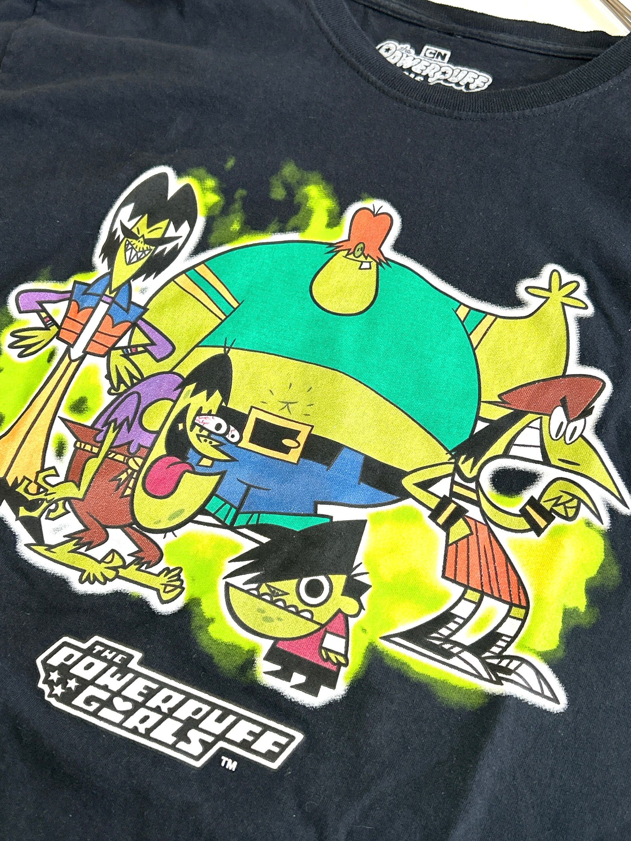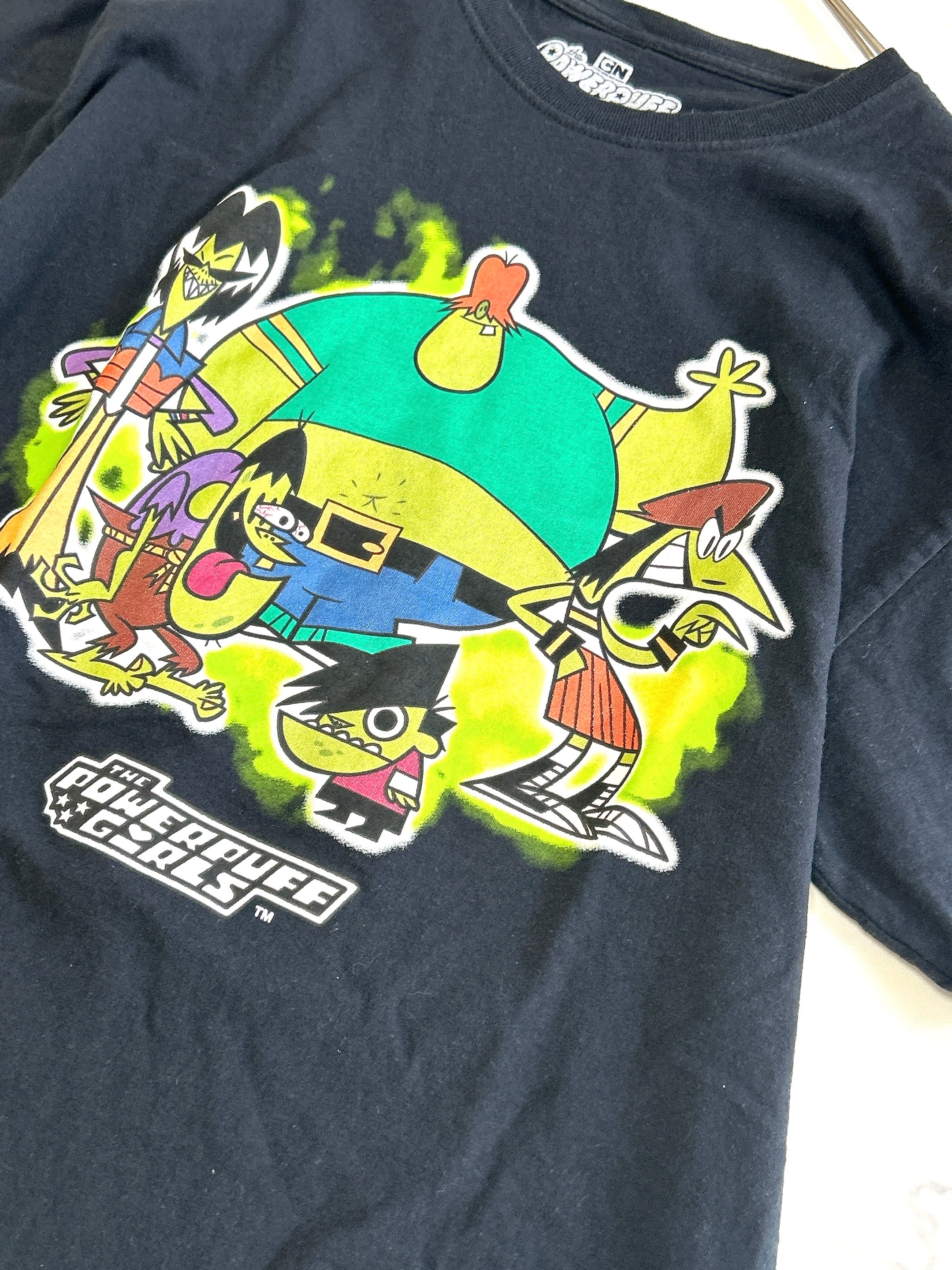 ギャングリーギャングTシャツ サイズM 肩幅46cm 身幅47cm 着丈70cm パワーパフガールズに出てくる ギャングリーギャングのTシャツ。 なかなか無いと思います。 多少の使用感はございますが古着にご理解ある方なら気にならないかと思います。