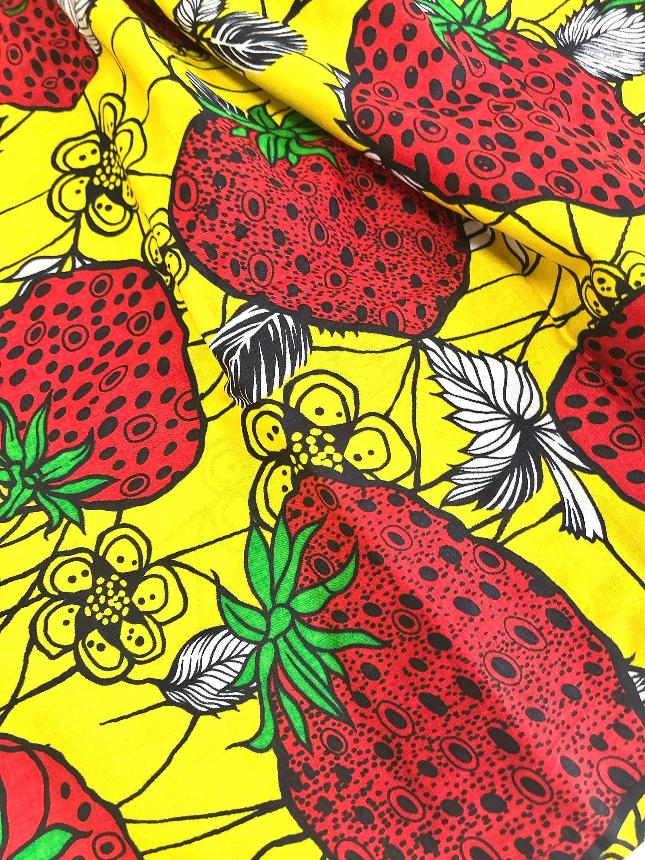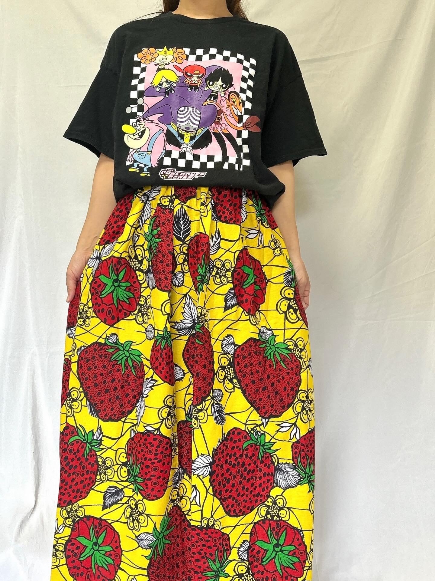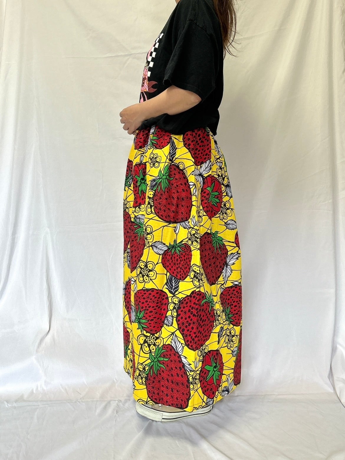 苺スペシャルなスカート サイズ ウエスト25〜50cmほど 着丈90cm 158cm着用 平置きサイズ アフリカンな苺スカート 派手ですが、お洋服にも合わせ やすい不思議なスカートです。 こちらも業者の方に作っていただきました^^