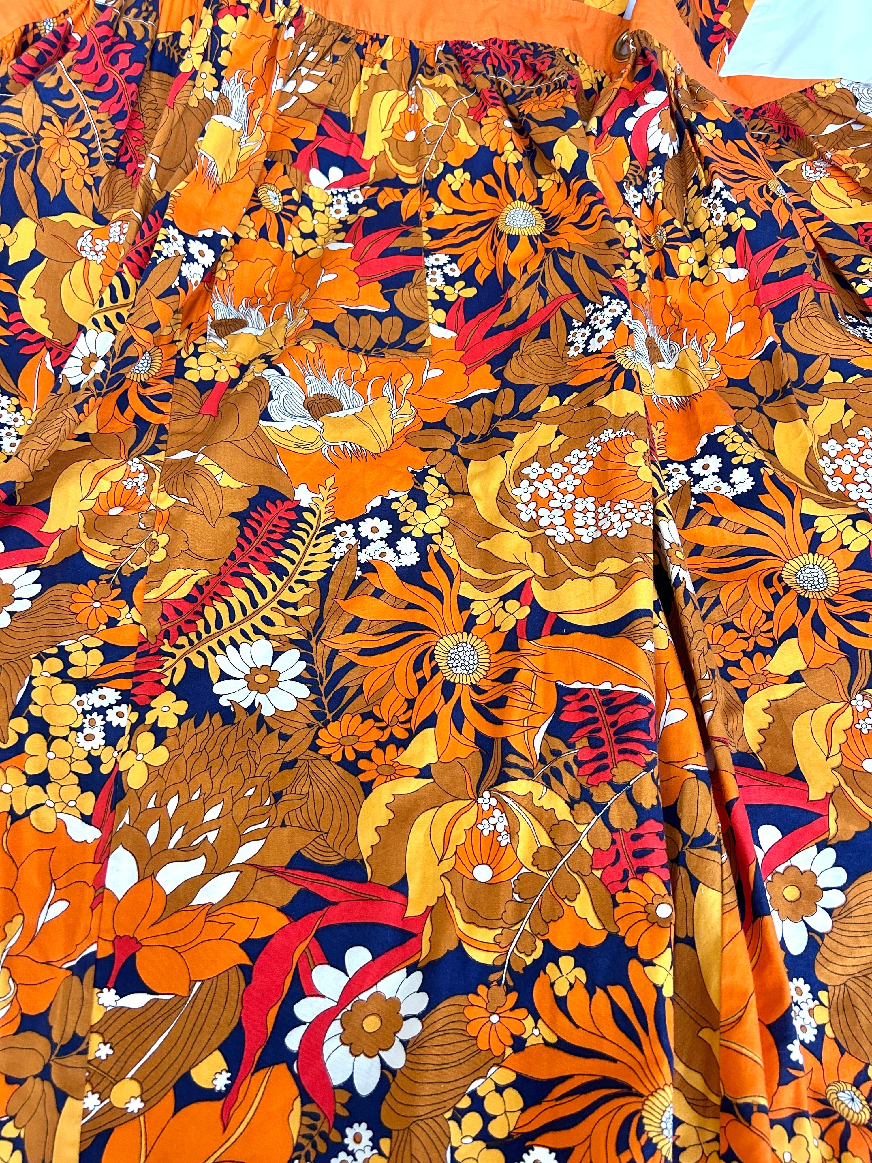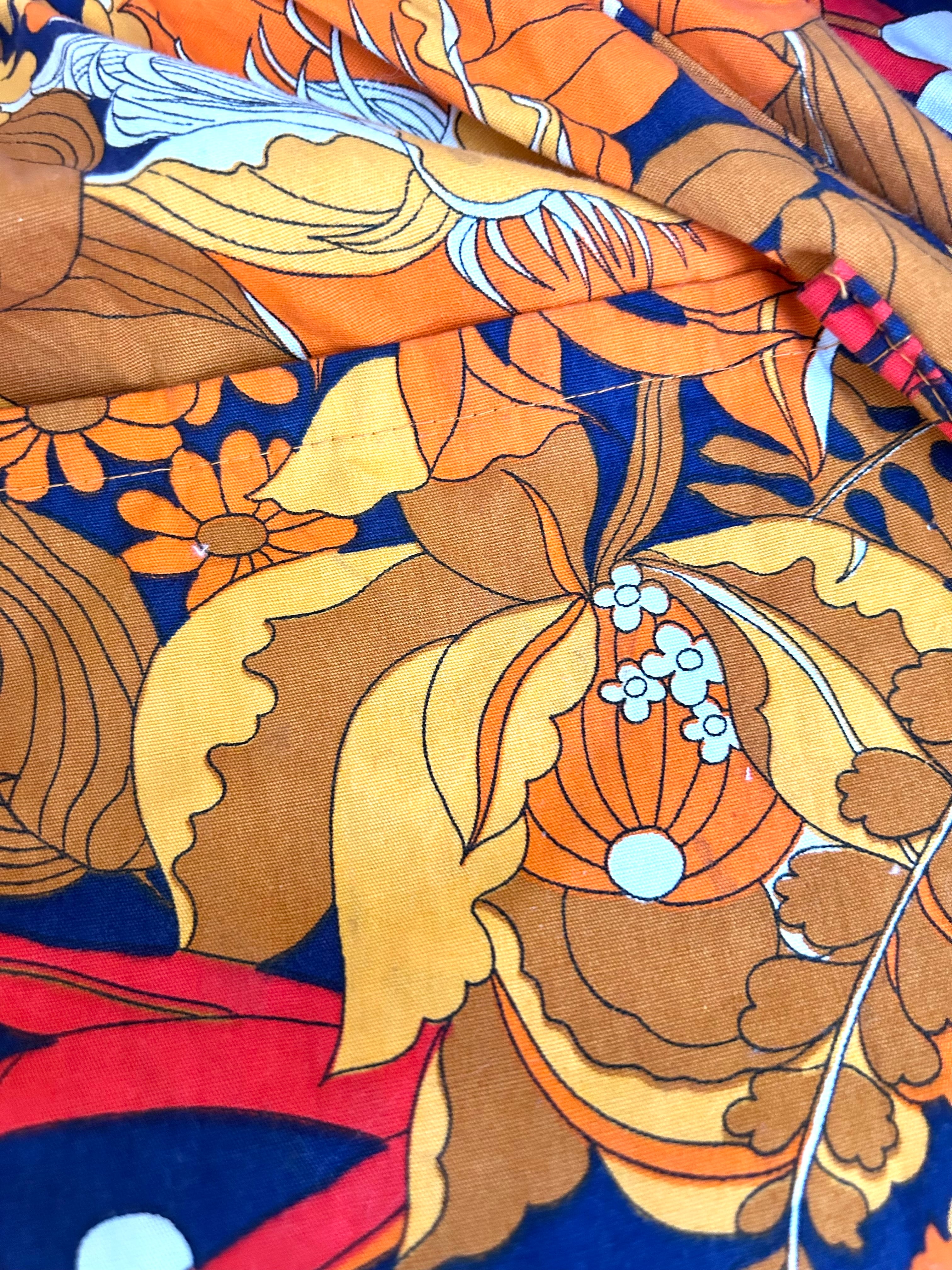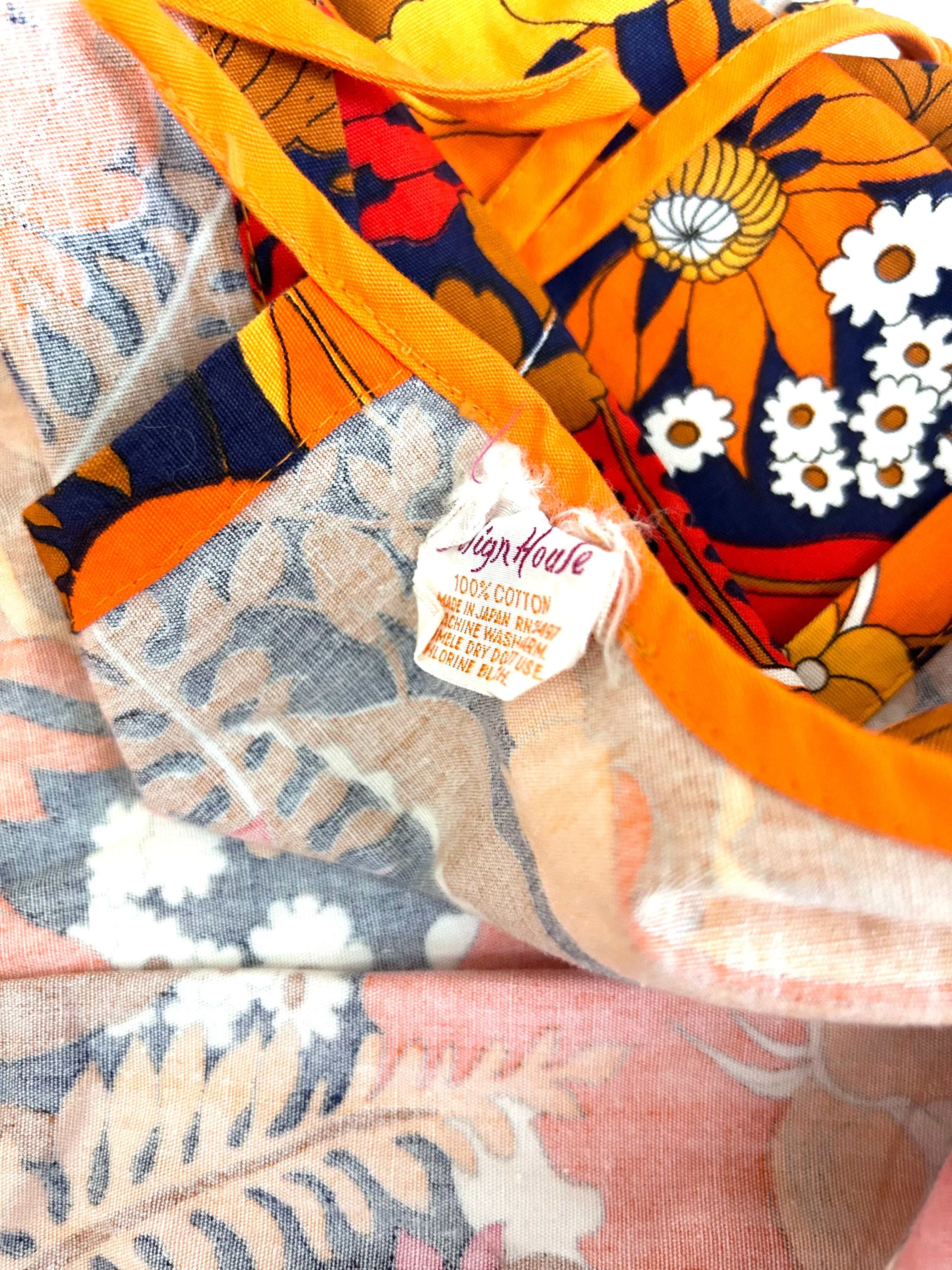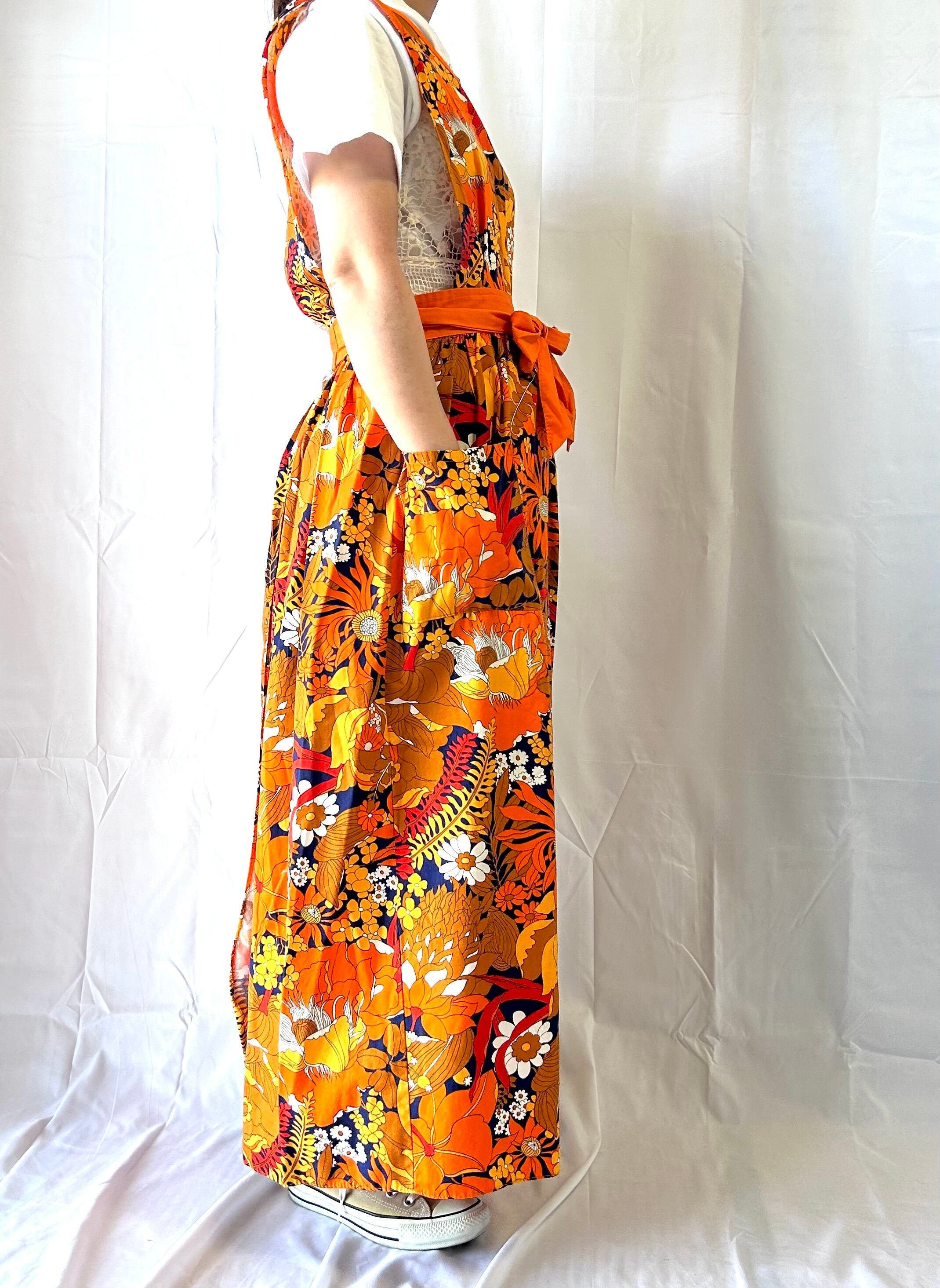 パッチワークプリントのヴィンテージエプロンワンピース。