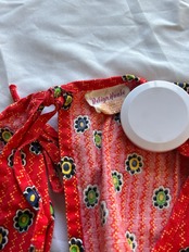 パッチワークエプロンワンピース 朱